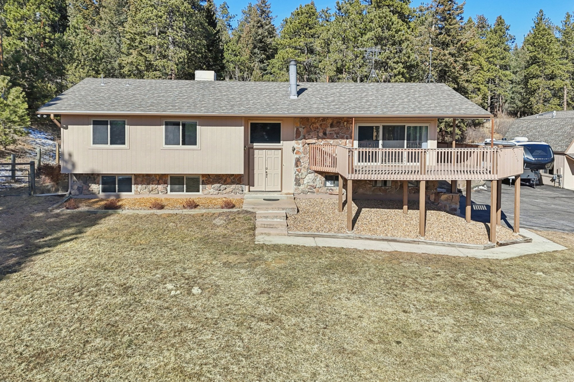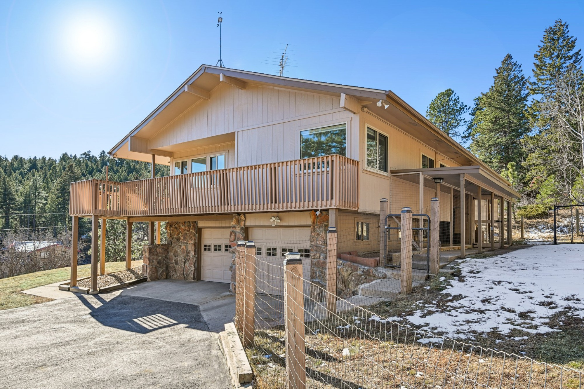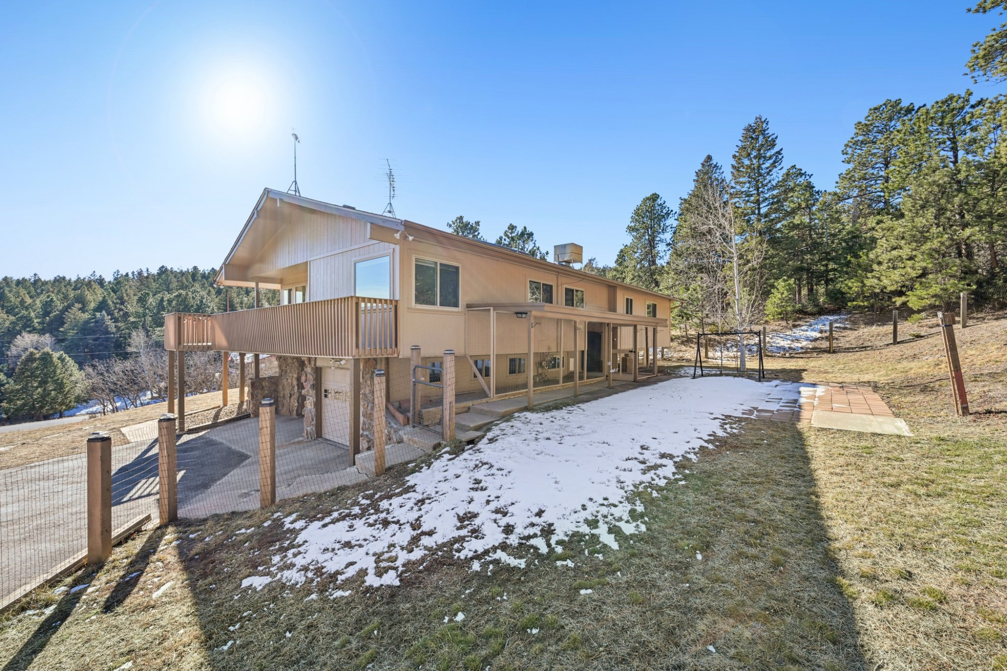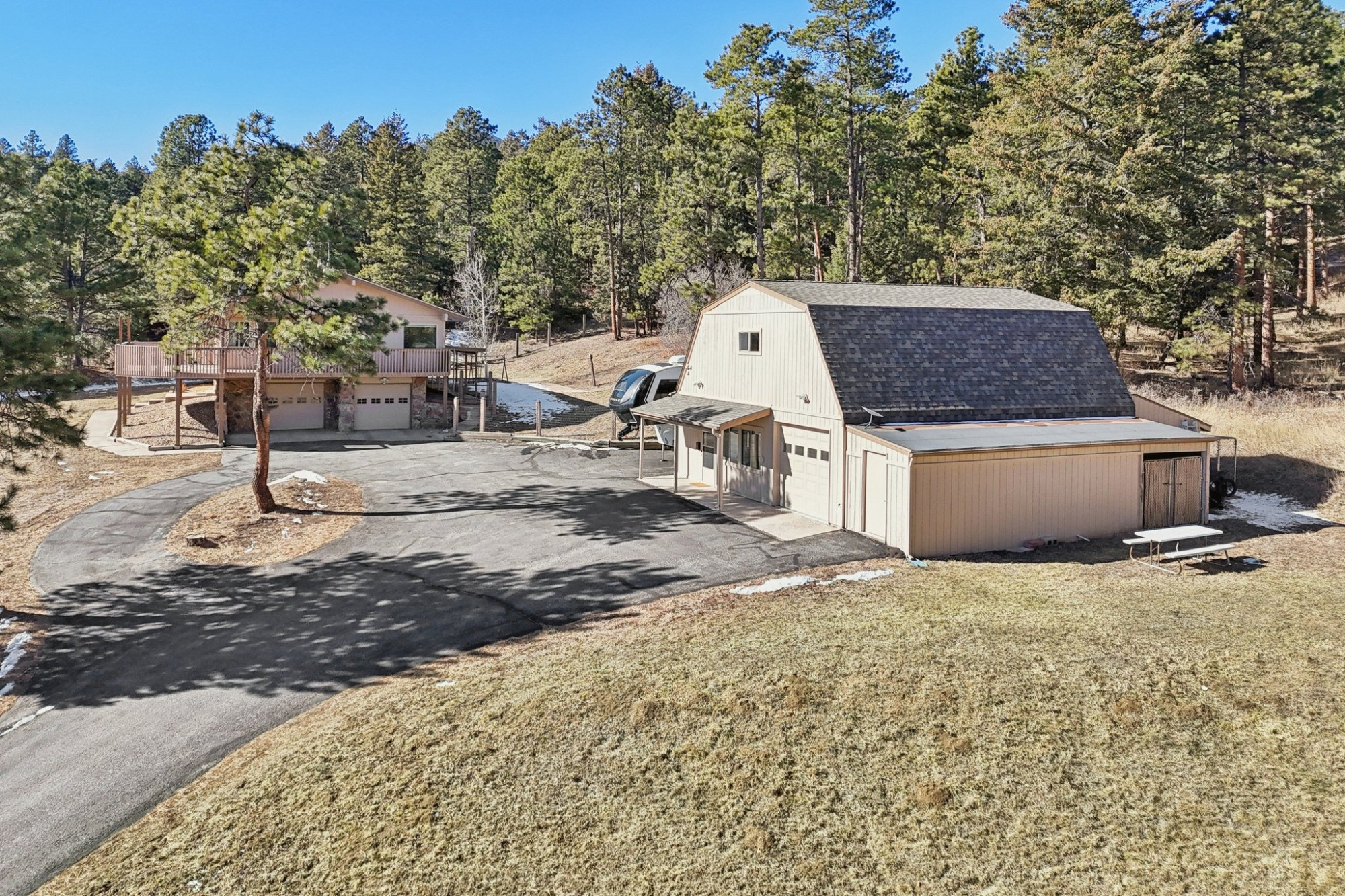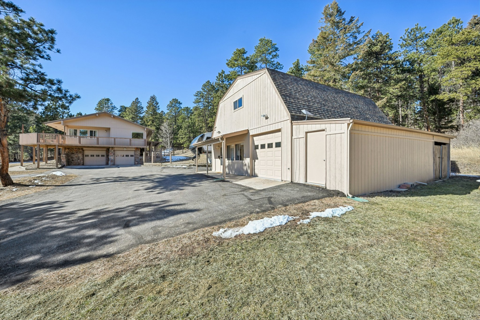 Take advantage of the Class 4 impact-resistant roof on both the main house and the ADU, along with a radon mitigation system. Enjoy the best of Colorado living on the back patio or on the wraparound deck that invites views of your wooded property with ponderosa pines and aspen, and the foothills. There’s a fenced area, 2 dog runs, and a private well. A generator adds peace of mind and a dedicated hot tub area is ready for you. There is available RV parking with 30 amp hook ups and black water dump access. Plenty of off-street parking with a level paved circular driveway. 3 heated garage spaces across both structures, including EV charging in the main garage.