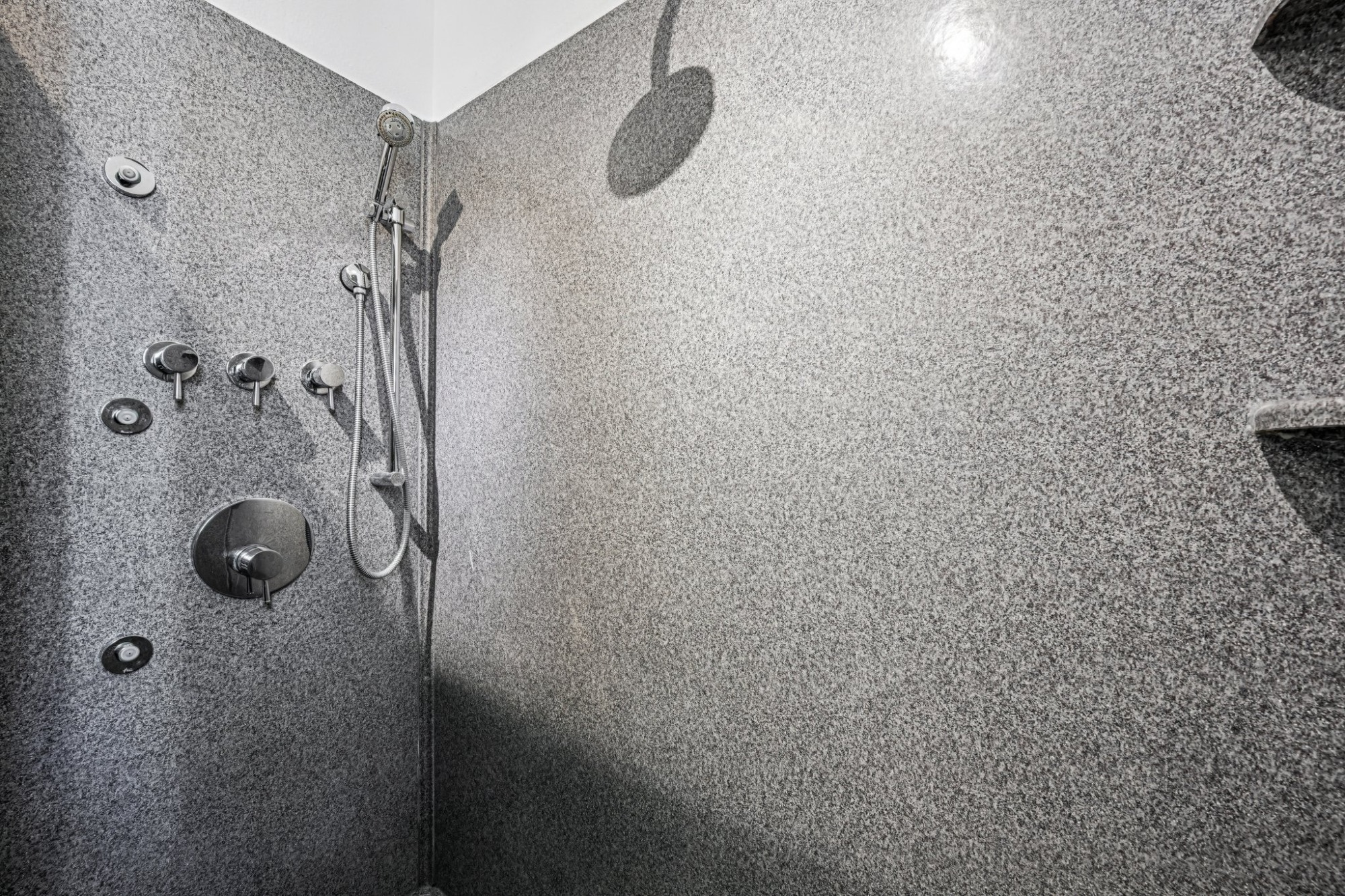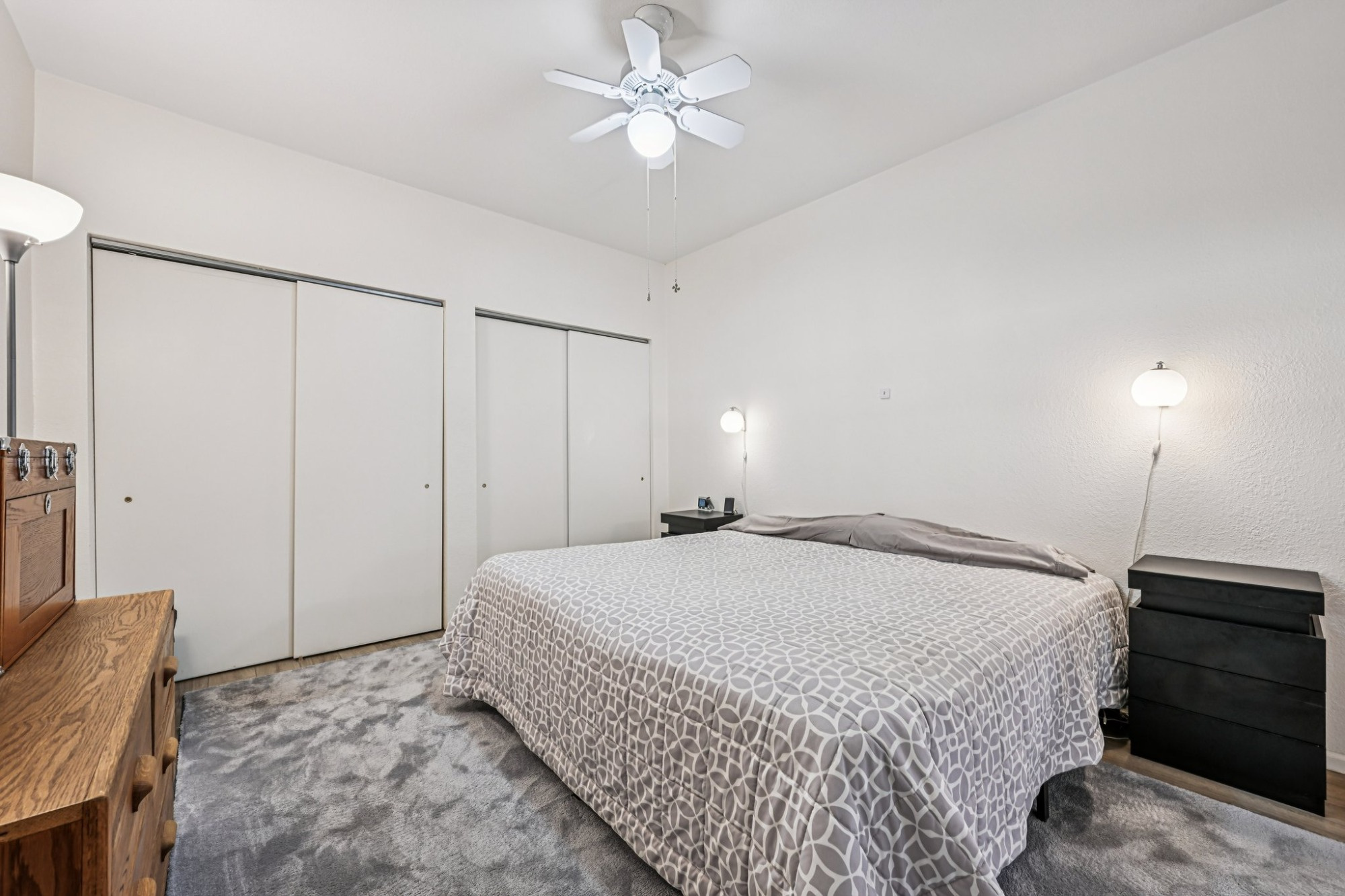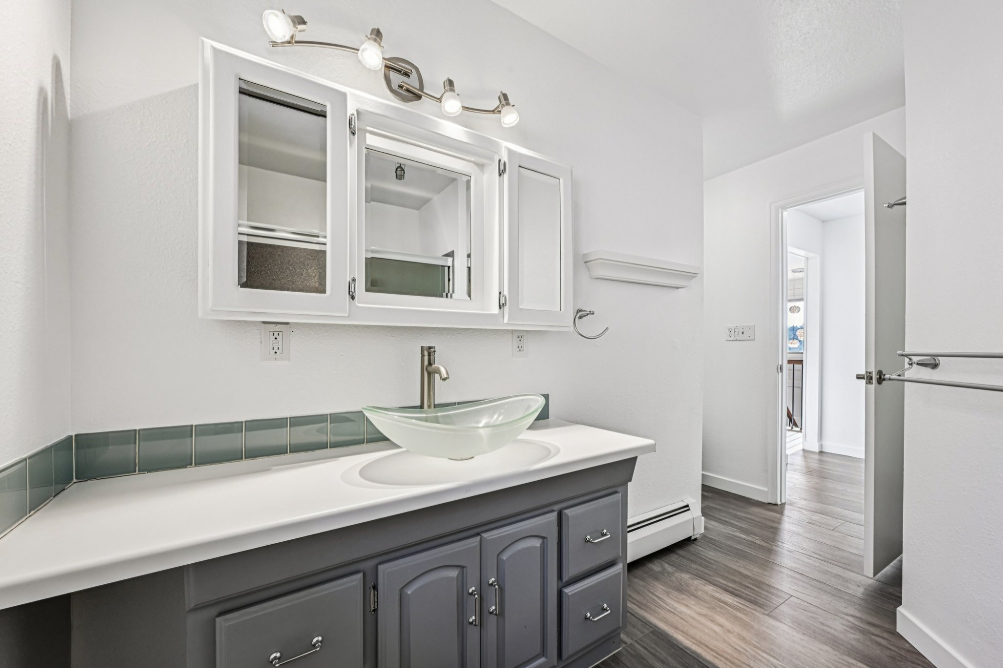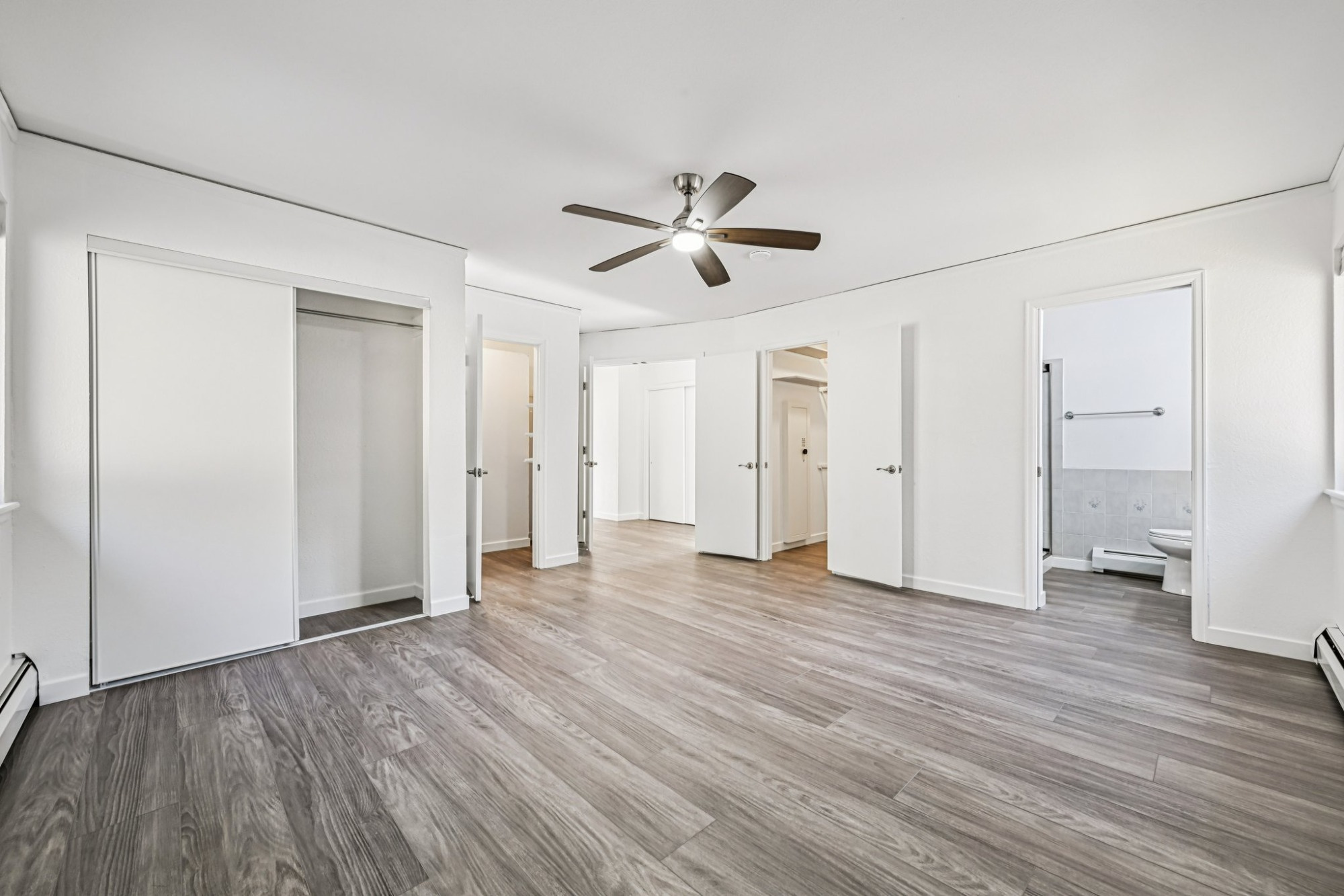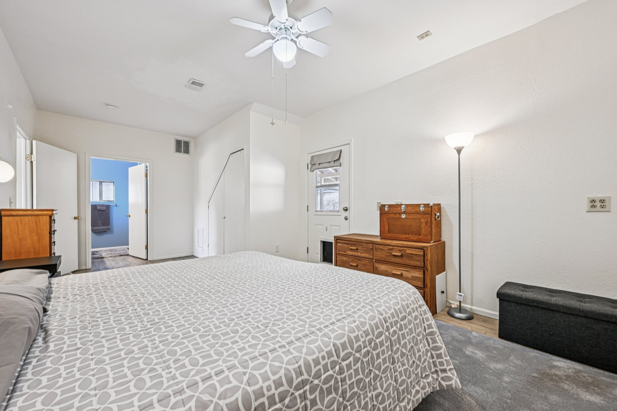 This upper level has a generous sized primary suite, with 3 closets, including a walk-in closets, and a stunning upgraded private 3/4 bath, and 2 secondary bedrooms and a spa bathroom. There are 2 more bedrooms and full bath in the lower level along with a laundry room.