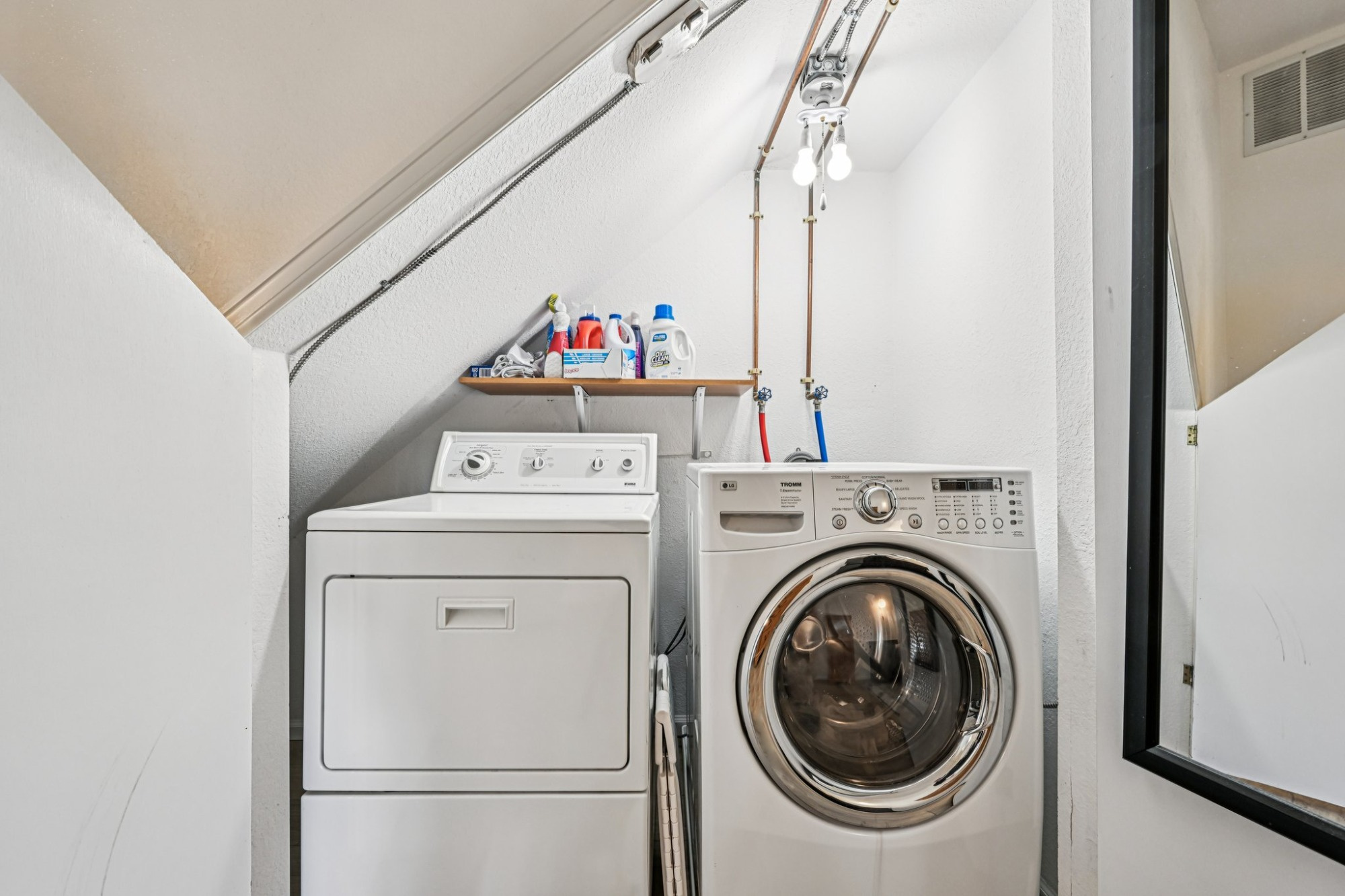 A standout feature is the fully legal, county approved 1,280 sqft ADU that lives like a true second home. Designed for comfort and independence, it offers zero entry access, and has an open layout with a living room and a full kitchen. The main level is completed with a bedroom, an en suite 3/4 bath and a laundry area. Upstairs is an unfinished loft area, and potential for a 2nd bedroom. There’s a 1/2 bath and a new high-performance HVAC system. The finished oversized 1 car garage has an epoxy coated floor, newer garage door and is heated and cooled by the central HVAC unit.